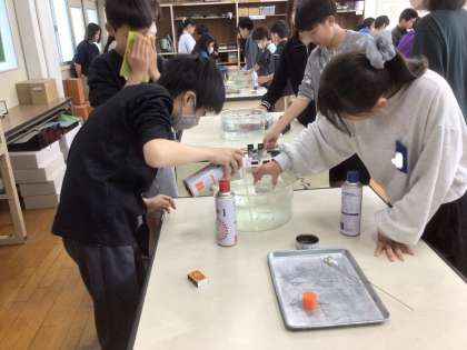 気体の中のろうそくの様子について調べました。