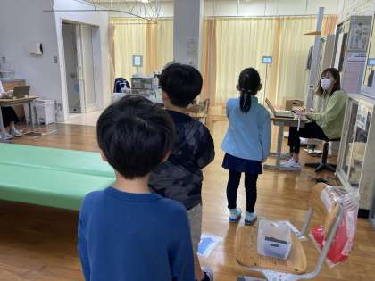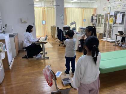 視力検査を実施しました。 廊下で静かに待つことができました。