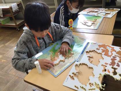 愛知県の模型を作りながら、高いところと低いところを見つけました。