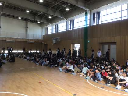 前期の任命式を行いました。児童会や学級代表、サークル長のみなさんが大きな返事をして任命状を受け取りました。