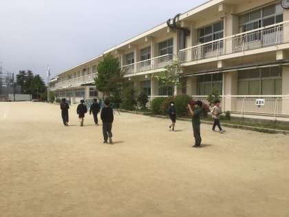 思い出の校舎を描くために、構図を考えて写真を撮りました。