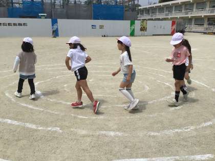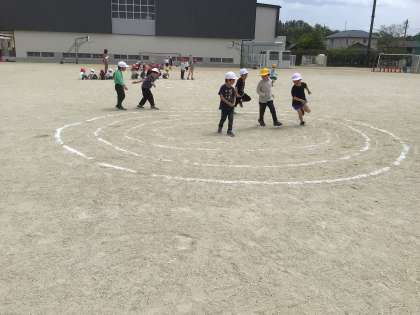 かけっこあそびの学習で、ギザギザコースやグルグルコースを走りました。