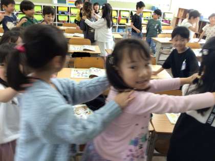 曲に合わせて体を動かそう!というと、自然と列車が出来上がります、、、今日はセブンステップスとチェッチェッコリを聴きました。