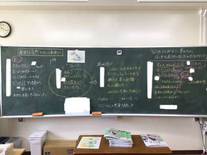 道徳の時間は対話を大切にしています。身の回りの自然についての考え方を深めました。