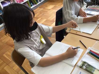 ツルレイシの種を観察しました。大きさや色、形や触り心地に注目して観察することができました。