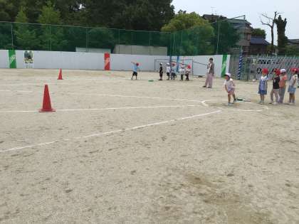 6月の体力テストに向けて、ソフトボール投げと50m走の練習をしています。