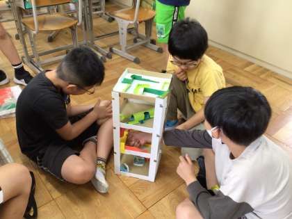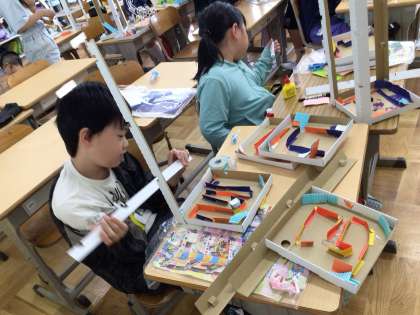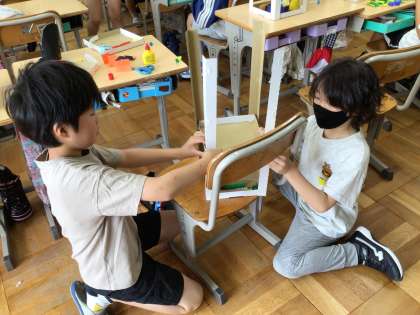完成が近づいてきました。完成した子同士で確かめ合い、よいところや改善点について話し合っています。