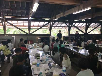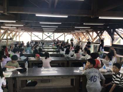 施設の方の説明を聞いて、これから野外炊事です。
