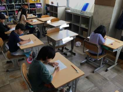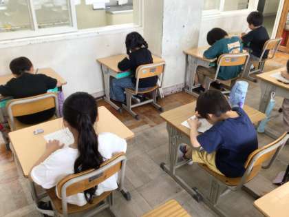 2年生になって初めての一斉テストを実施しました。 明日は算数です。
