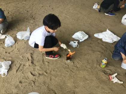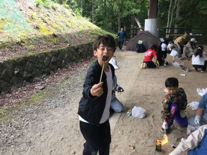 自分でおこした火を使って、マシュマロを焼いて食べました。
