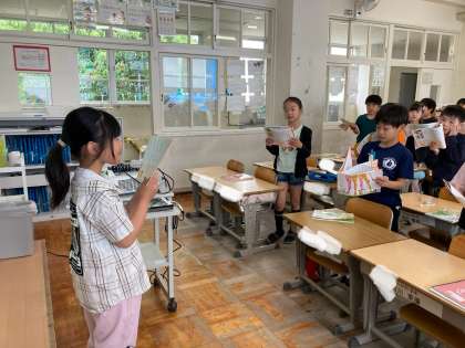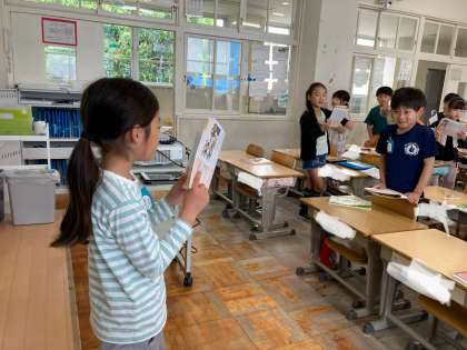 2年国語 話す聞くスキル 公開日 2025/05/26 更新日 2025/05/26 各学年から 国語の時間の始めや朝学で、話す聞くスキルに取り組んでいます。 今日は先生役として、前に立って練習をリードしてくれる子が現れました。