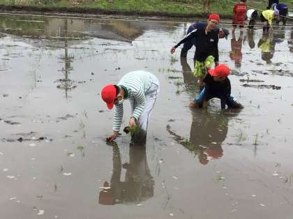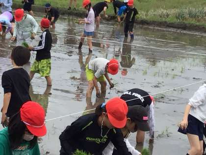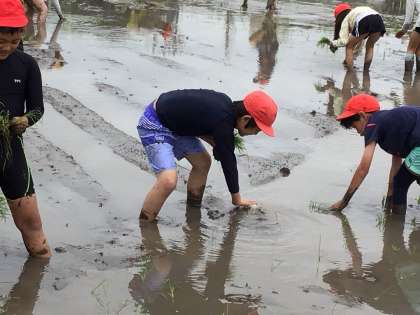 7・8・9組 頑張ったよ!ー5年総合田植え体験ー 公開日 2025/05/26 更新日 2025/05/26 各学年から 5年生が総合的な学習で、地域のお米農家の方のご厚意により 田植え体験を行うことができました。 特別支援学級の子どもたちも交流学級の子達と一緒に体験することができました。 泥田遊びをさせていただいた時は、田に入るのを躊躇していた子もいましたが その時勇気を出して入れたことで 今回はみんなと一緒に田に入り、受け取った苗を一生懸命植えることができました。