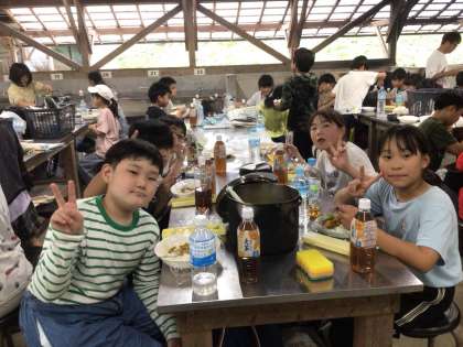 7・8・9組 美味しくできたよ!ー5年野外学習(その2)ー 公開日 2025/05/26 更新日 2025/05/26 各学年から 事前に家庭科の授業で練習したことを生かして みんなで力を合わせて作ったカレーライスの味は格別でした。