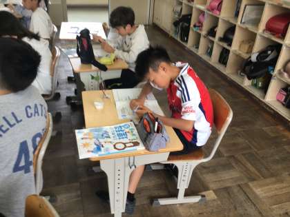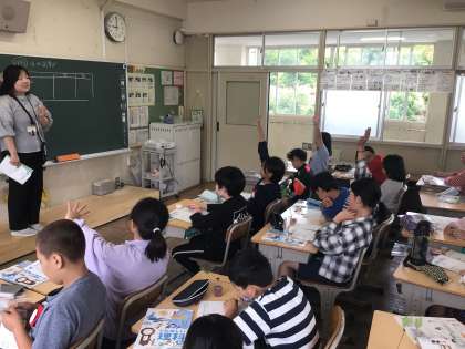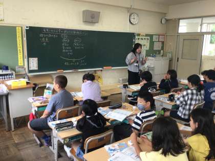 インゲンマメの観察をしながら、植物の発芽の条件について学習しています。