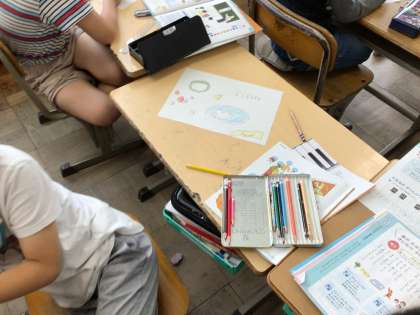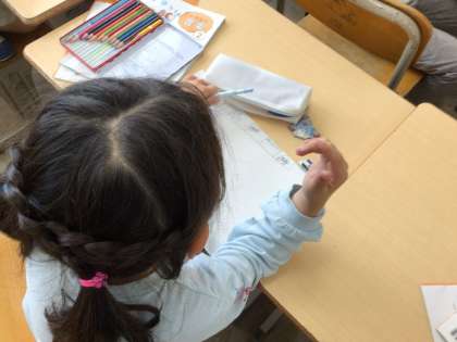 ドレミのうたの歌詞にあるドーナツなどを、絵に表現してみました。