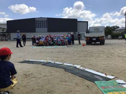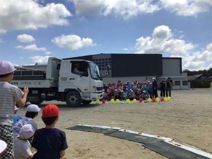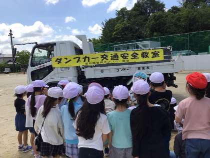 7・8・9組 大きな車の内輪差、危険だねー2年ダンプカー安全教室ー