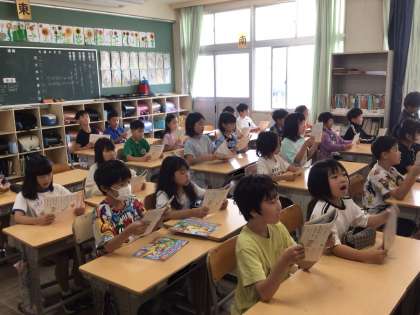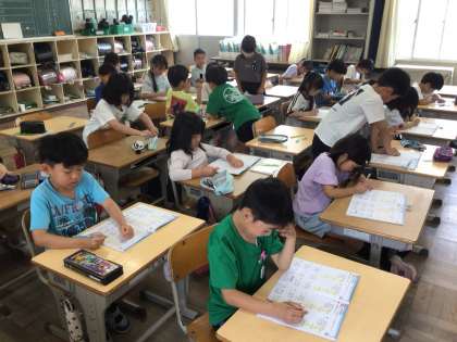 算数の勉強では、早く解き終わった子が他の子に寄り添って一緒に考えていました。優しい子どもたちです。