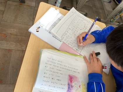 2年国語 名前を見てちょうだい 公開日 2025/06/03 更新日 2025/06/03 各学年から 第四場面のまとめをしました。 帽子の名前が「また」変わったという発言がありました。そして、「また」風で飛ばされたという発言もありました。第三場面でも同じことが起きたことが分かっている発言ができています。