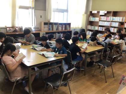 図書室に来てクラスみんなで本を借りました。子どもたちには、本を好きになって欲しいです。