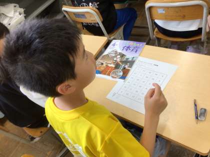 4年 体育 動体視力トレーニング 公開日 2025/06/05 更新日 2025/06/05 各学年から 雨で運動場が使えないときに、教室内で、ランダムに並んでいる数字を順番に探す動体視力トレーニングを行いました。