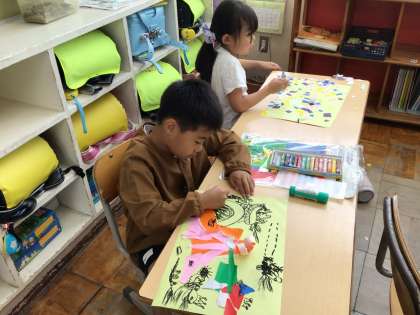 6・7・8組 やぶいた色紙、どんな形が見えてくるかな?ー1年図工ー