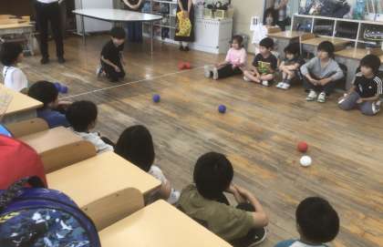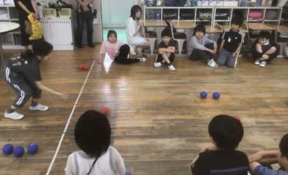 7・8・9組 自立活動でみんな仲良く 公開日 2025/06/13 更新日 2025/06/13 各学年から 8組の自立活動の様子です。 この日は2つのチームに分かれて ボッチャの対戦をしました。 自立活動では、 友だちと話し合って順番を決めたり、 ルールを守ってゲームをしたり、 みんなと仲良くする方法を学んでいます。