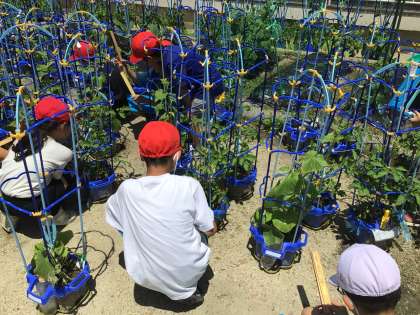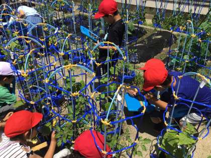 2年生活 マイラボガーデン 公開日 2025/06/18 更新日 2025/06/18 各学年から ぐんぐんと伸びています。 連日暑さが厳しく、葉っぱがだれてしまっているものもありますが、土に水をあげることで、育てていきましょう。