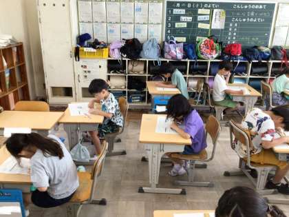 算数の一斉テストを実施しました。 たし算、ひき算の筆算が18問もありましたが、よくがんばりました。