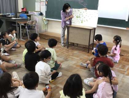 毎週金曜日は読み聞かせの日です。この日は1組と3組に読み聞かせボランティアさんが来てくれました。