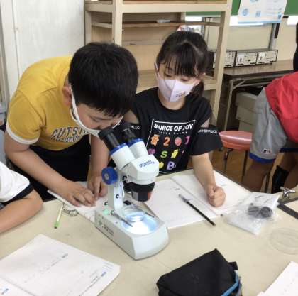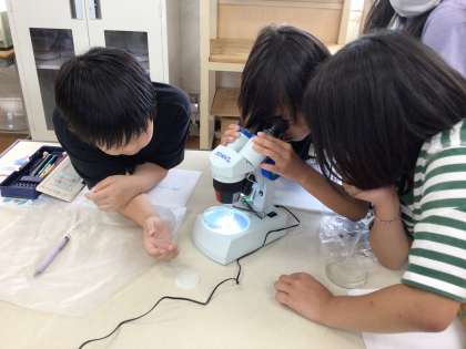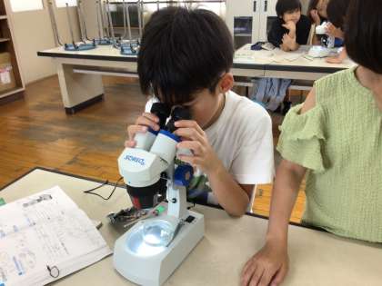 メダカのたまごを双眼実体顕微鏡を使って観察しました。 たまごの中の様子がよく見えました。