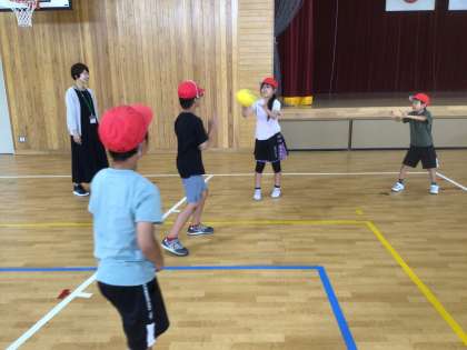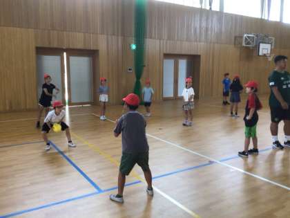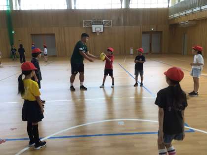4年生の子どもたちにタグラグビーを教えてくださいました。
