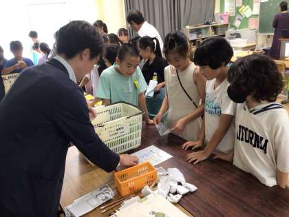 アイシン出前授業があり、買い物ゲームをしながら環境にやさしい商品について考えました。