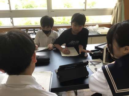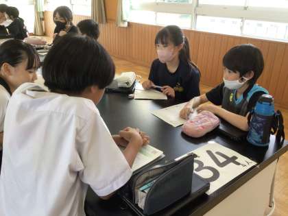 6年 総合相談会 その3 公開日 2025/07/04 更新日 2025/07/04 各学年から 藤岡南中学校の2年生と総合相談会を行いました。地域の魅力が伝わるまとめ方について、アドバイスをもらいました。