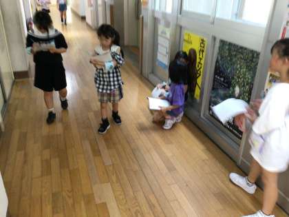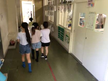 教室の数や子どもの数、廊下の長さなどを見出しにしようと考えて、学校を回っています。
