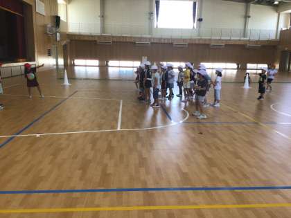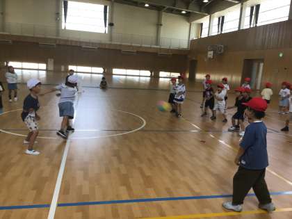 あまりの暑さにプールが中止となりました。涼しい体育館でリレーやドッヂボールをしました。
