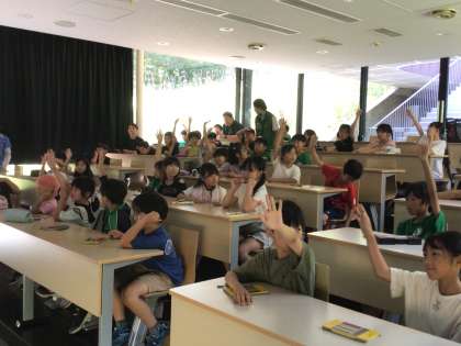 3年生 自然観察の森 公開日 2025/07/08 更新日 2025/07/08 各学年から 1、2組が自然観察の森へ行きました。厳しい暑さのため、室内での座学になりました。森で気をつけることや、昆虫クイズをしました。