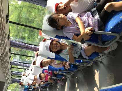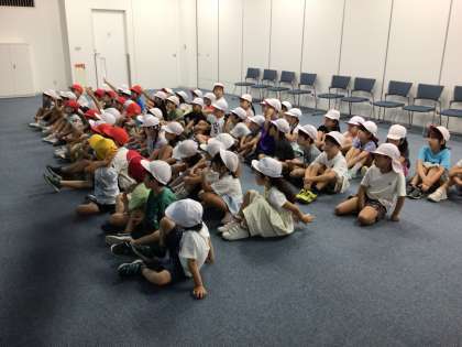 バスで交通安全のビデオを見ながら移動し、シアターでクイズを交えた交通安全講習を受けました。