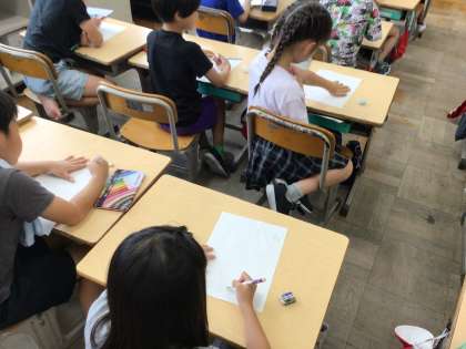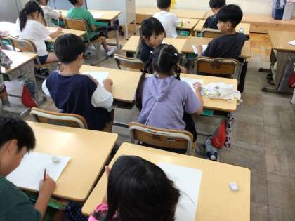 夏休みに応募できるように、ポスターのかき方を練習しました。