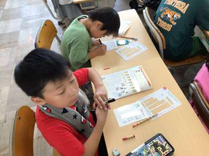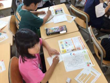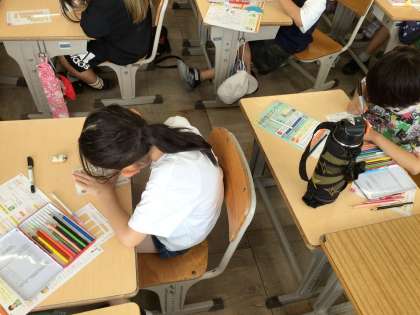 暑中見舞いを書きました。 お家に持ち帰って、ポストに投函しましょう。