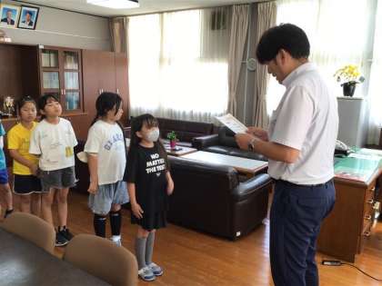 夏休み前の意見発表に立候補しました。4月からの成長を発表しようと挑戦したことがすばらしいです。