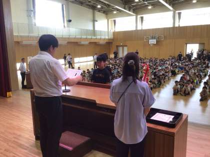 夏休み前の全校集会です。たくさんの表彰がありました。