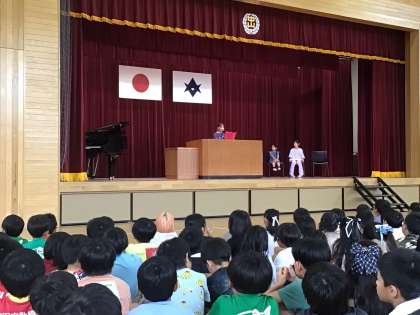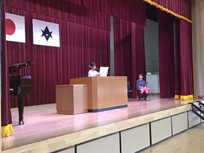2、4、6年生の代表の児童が全校の前で4月からの振り返りと、これから頑張りたいことを発表しました。