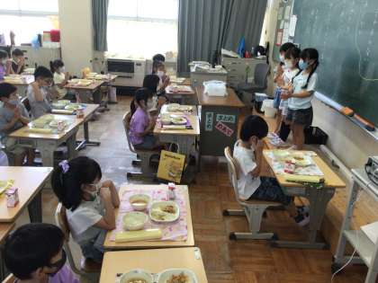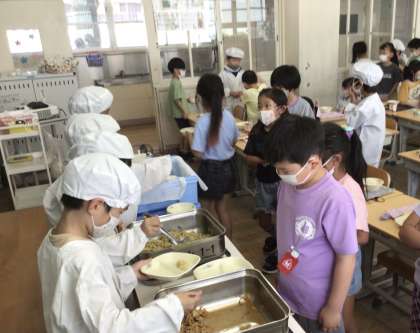 初日から早速給食の時間がありました。久しぶりでしたが、準備も素早く協力して取り組むことができました。