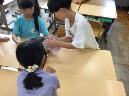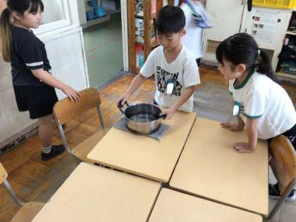 なべに入る水の量を実験して、大体の量を感覚的につかみました。