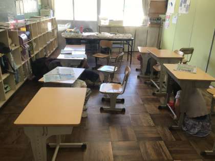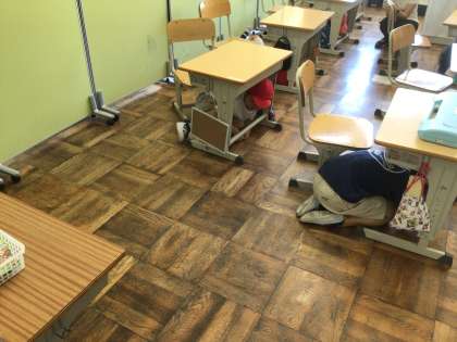 素早く机の下に身を隠し、身を守る行動を取ることができました。