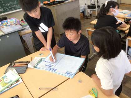 5年生 理科 公開日 2025/09/03 更新日 2025/09/03 各学年から 流れる水のはたらきを調べるためには、どんな実験をしたらいいのかを班で話し合って発表しました。 次回は考えた実験方法を実際にやってみます。