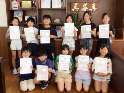 夏休み中に、自由応募に挑戦した人に笑顔賞が発行されました。自分のために、一生懸命取り組む姿がすてきです。