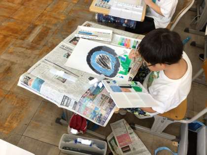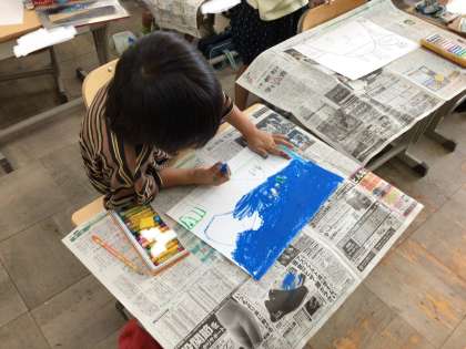 夏休みの思い出を大きな画用紙にかきました。