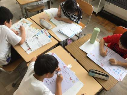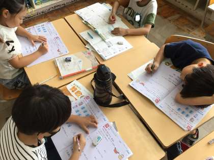 学びのまとめをしました。 班の形にして、すぐに相談できるようにしています。