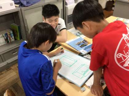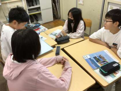 流れる水のはたらきを調べる実験方法を班で話し合いました。